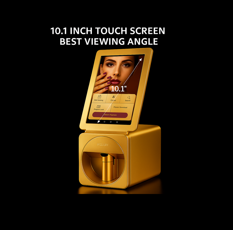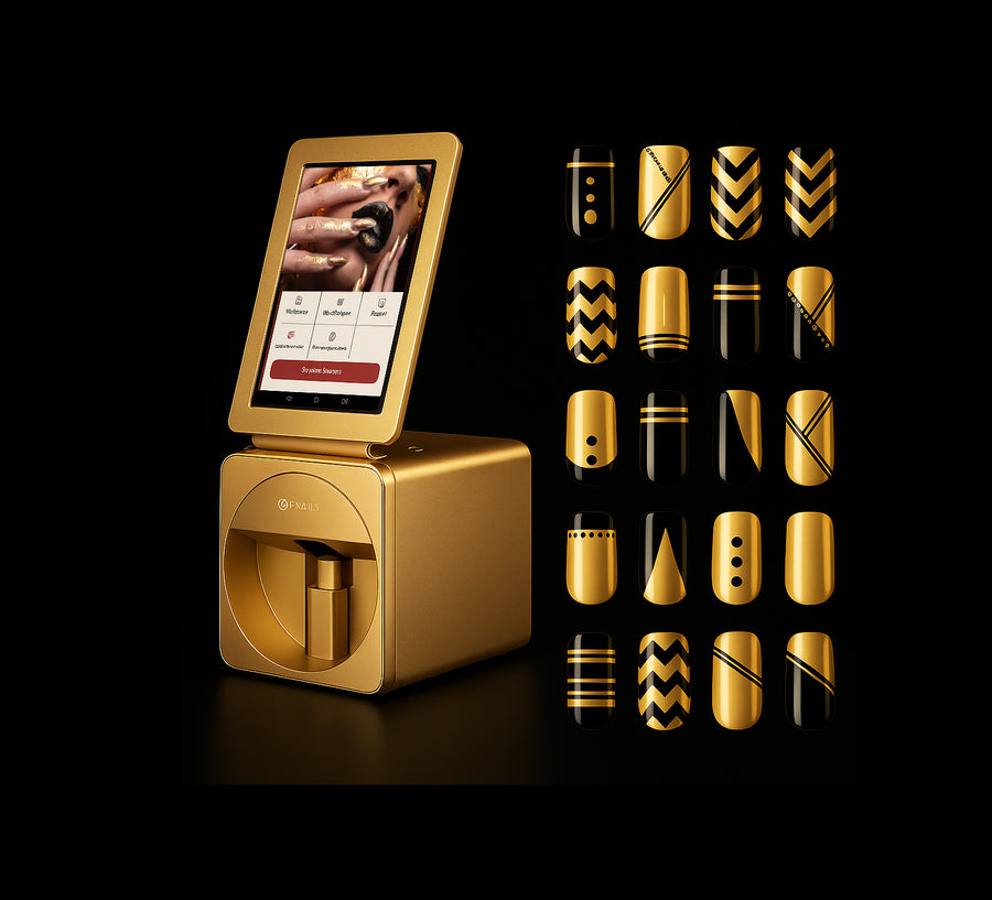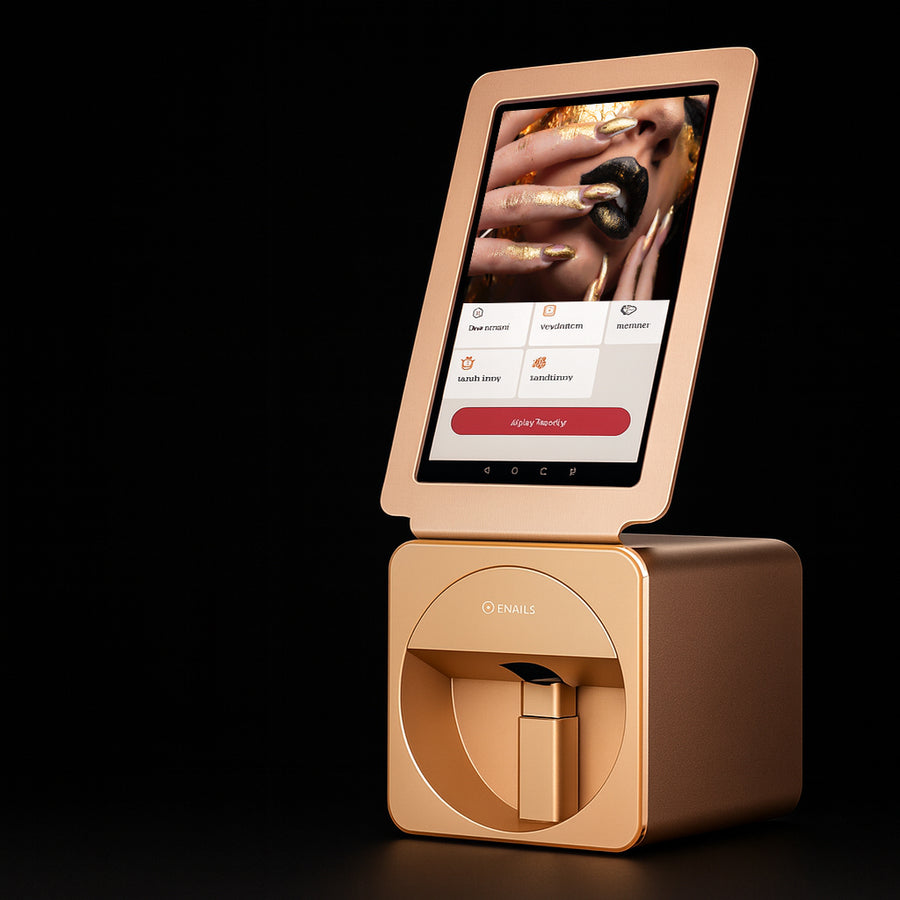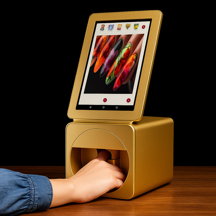 This high-end desktop nail printer is designed for modern nail salons that demand precision, speed, and premium aesthetics. With its elegant gold finish, advanced printing technology, and intuitive touch-screen interface, it delivers fast, flawless, and customizable nail art for commercial environments. Ideal for studios, beauty chains, and professionals who want to offer luxury nail services with consistent results.