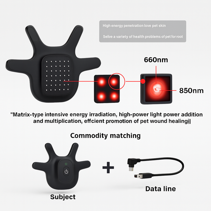 This wearable red light therapy vest provides gentle, targeted infrared heat to support pain relief, post-operative recovery, and overall comfort for pets. Designed for both cats and dogs, the vest delivers 660 nm red light and 850 nm near-infrared wavelengths to help reduce inflammation, improve circulation, and relax tense muscles.
